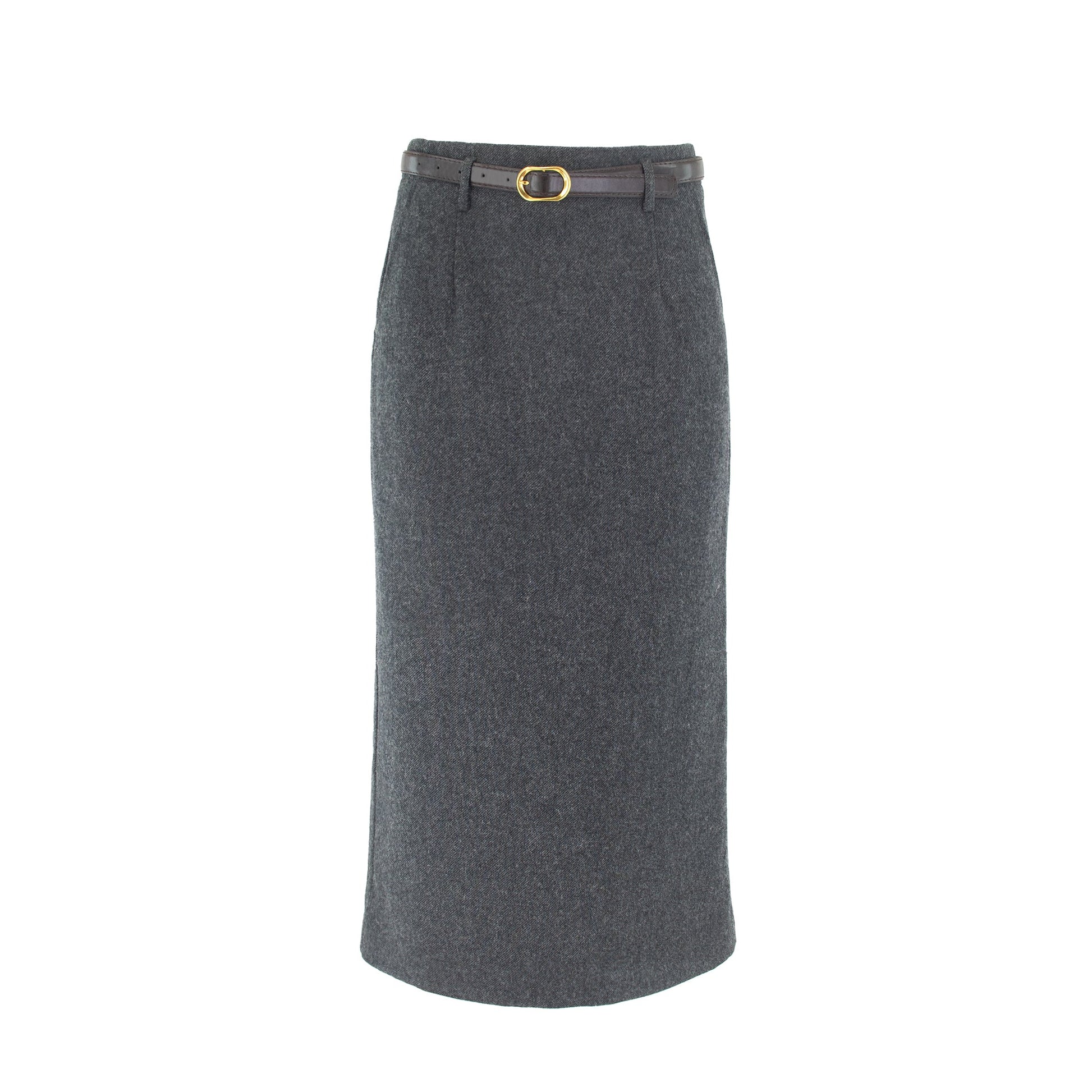 STRAIGHT WOOL SKIRT WITH BELT